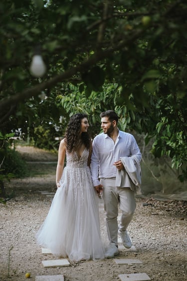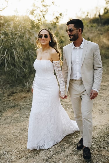 צילומי החוץ הם הפסקה קטנה בתוך כל ההתרגשות של היום — רגע לנשום, להסתכל אחד על השנייה ולהבין: זה באמת קורה. אנחנו יוצרים איתכם אווירה נעימה וזורמת, עם הכוונה פשוטה וקלה שמוציאה את הטבעי שלכם החוצה. כל זוג מביא איתו משהו אחר, ולכן גם כל סט תמונות יוצא ייחודי: אור אחר, אנרגיה אחרת, והקסם הפרטי שלכם שמצטלם הכי יפה כשלא מנסים “להיות מושלמים” — רק להיות יחד.